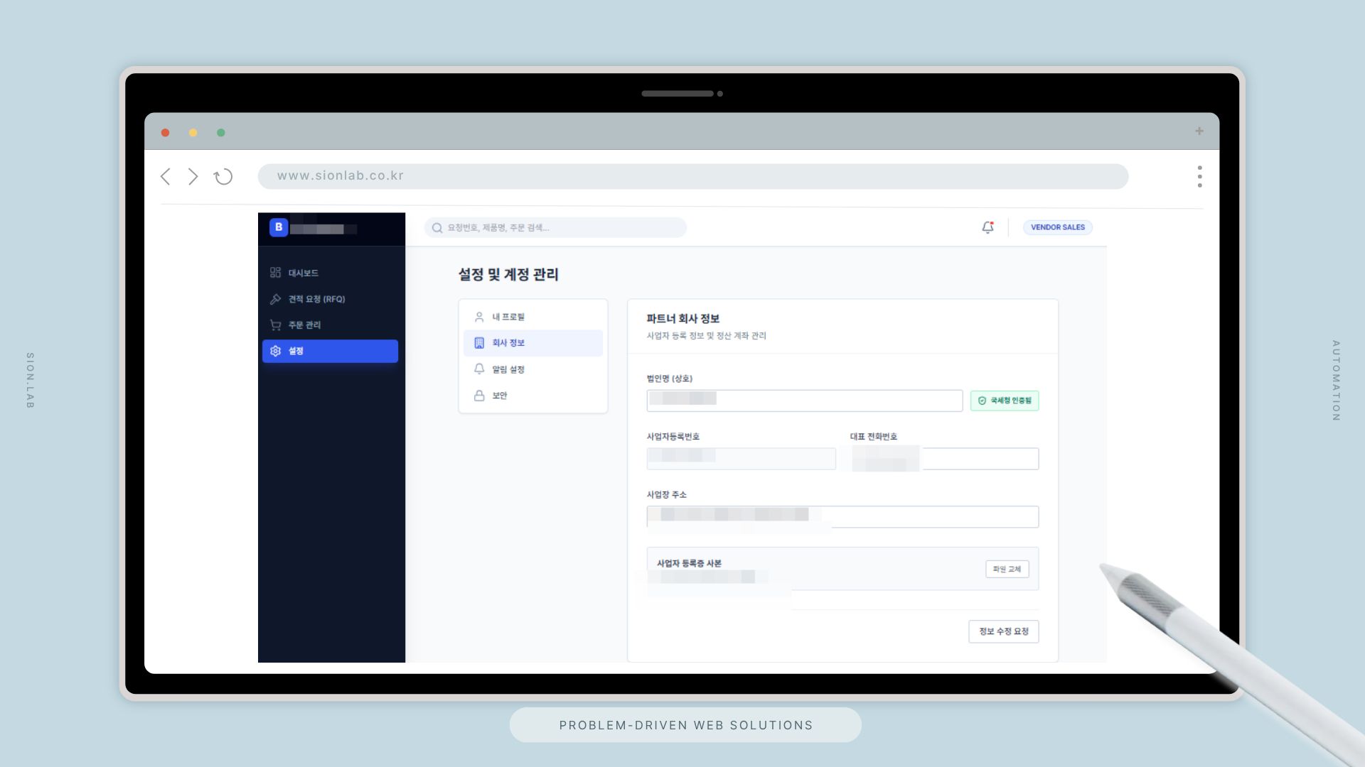 시온랩은 파트너사가 직접 견적 요청에 응답하고, 주문부터 라이선스 발급·정산까지 한 곳에서 관리하는 B2B 소프트웨어 유통 통합 플랫폼을 설계·구축했습니다.