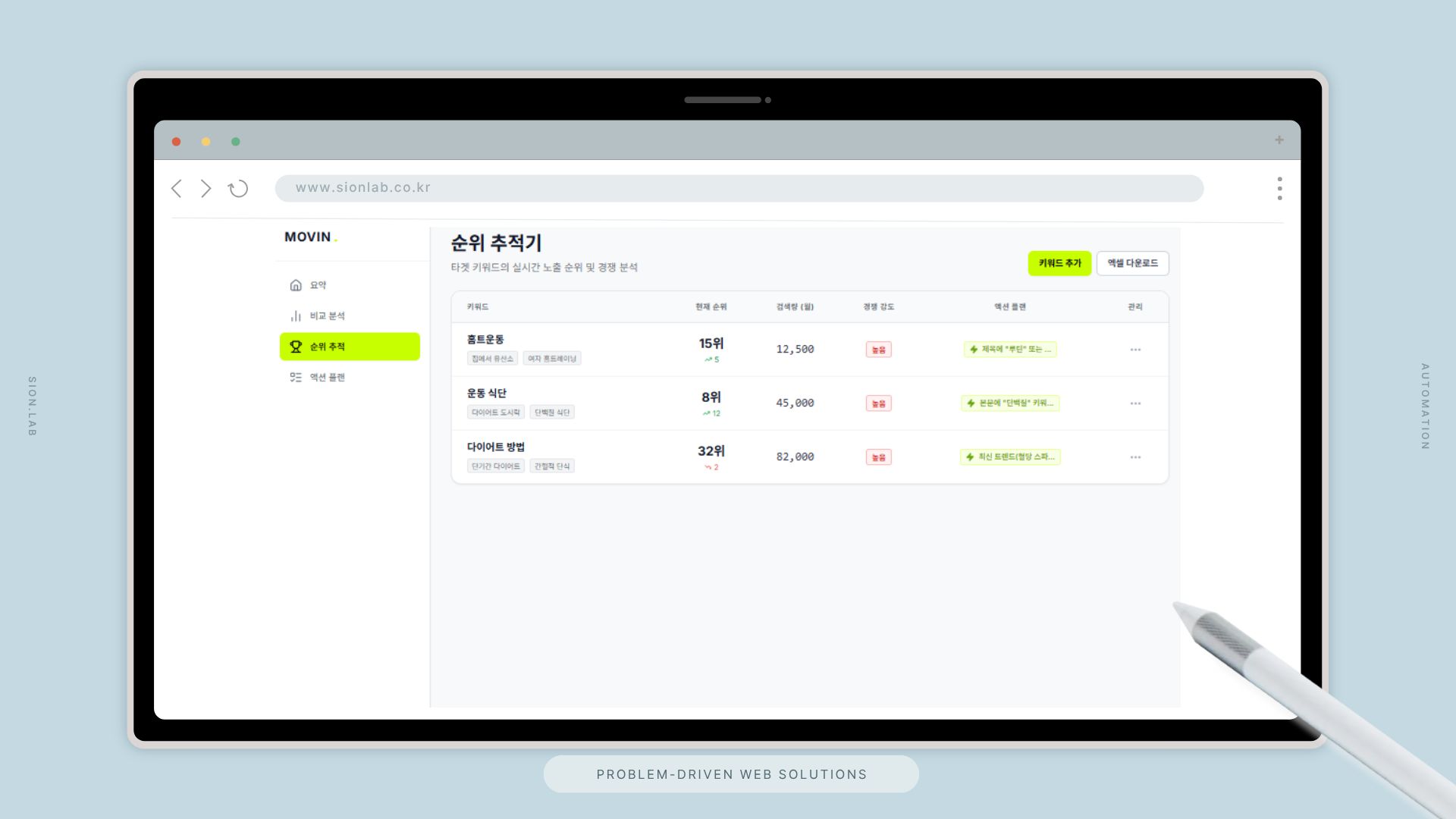 경쟁자 분석에 하루 3시간, 키워드 순위 확인에 1시간 이상 소요